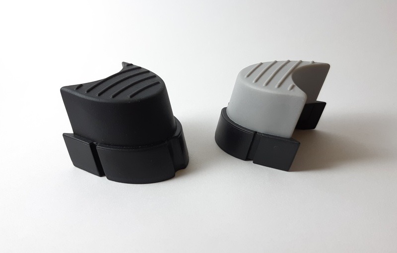 辦公椅扶手升降按鈕 ★成形工藝 - 雙料雙色成形 / 旋轉固定側 ■成品總重 : 9.65 公克 ■模具穴數 : 4 穴 第一射 ■成形塑料 : ABS ■成品重量 : 5.5 公克 ■熱嘴數量 : 4支 ■熱嘴選型 : 針尖式 ■進澆位置 : 成品 第二射 ■成形塑料 : TPR / 灰色 或 黑色 ■成品重量 : 4.15 公克 ■熱嘴數量 : 1支 ■熱嘴選型 : 針尖式 ■進澆位置 : 流道 免洗碗 ● 成品重量 : 14 公克 (薄壁成形) ● 成形塑料 : PP ● 成形穴數 : 2 穴 ● 熱嘴選型 : 針閥式 ● 進澆位置 : 成品 儲物罐蓋 ◆ 成品重量 : 55 公克 (薄壁成形) ◆ 成形塑料 : PP ◆ 模具穴數 : 2 穴 ◆ 熱嘴選型 : 針尖式 ◆ 進澆位置 : 成品