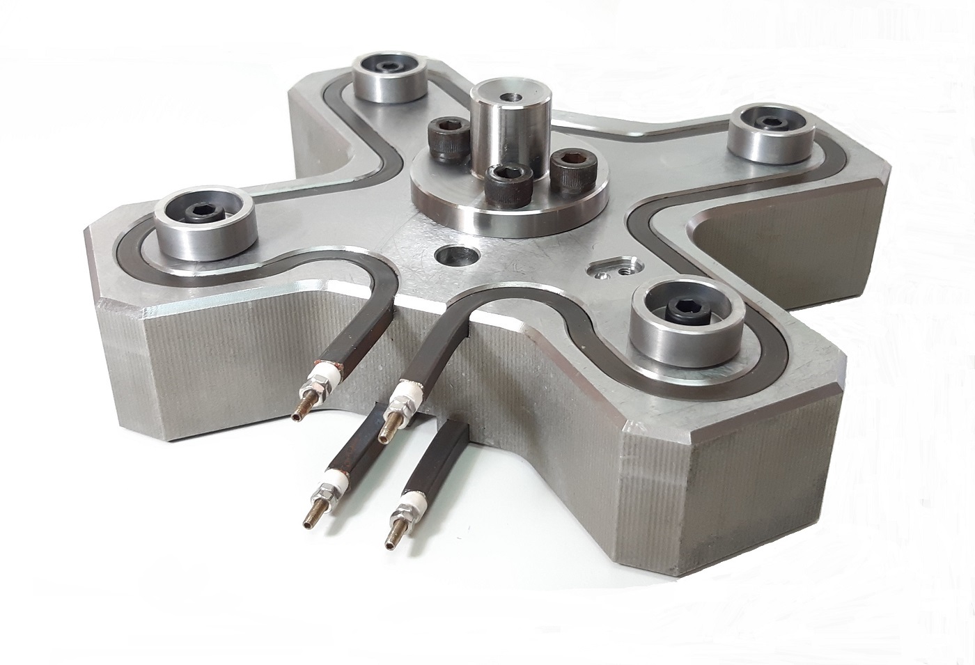 十字型外觀的分流板,通常為要求達到平衡流動之四穴塑膠製品的應用。